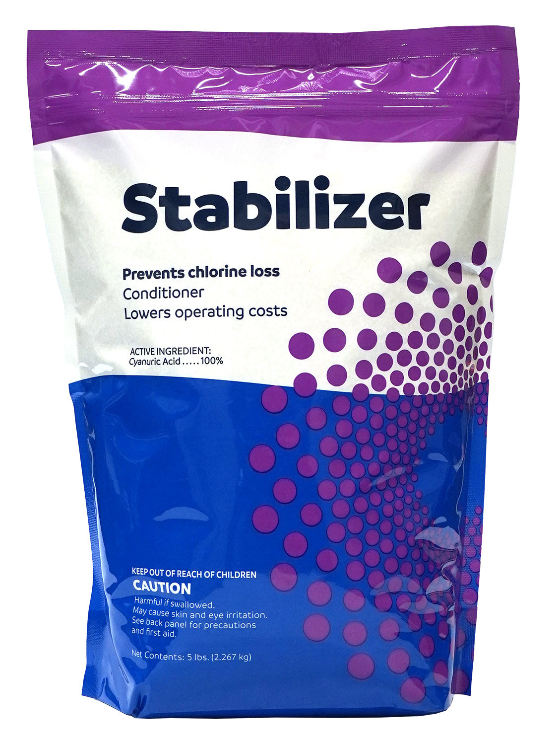 A granular soluble product that prevents chlorine residual loss due to sunlight. Without Stabilizer, chlorine quickly consumption increases. This product reduces maintenance costs and chlorine consumption. It is intended only for outdoor, chlorinated pools. The ingredient of this product is cyanuric acid.